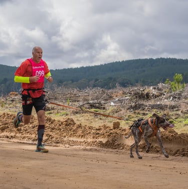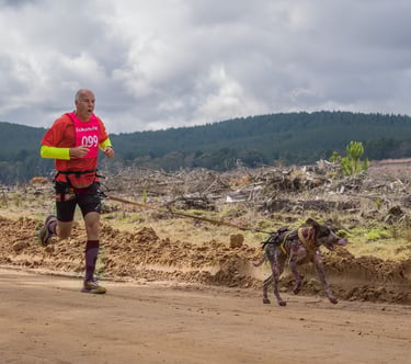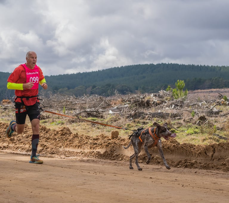 I'm Robert, in my younger days I was a back of the pack Triathlete, Mountain biker, and Kayaker. I'd been fairly inactive for a while, our Doberman puppy Malee changed everything. I wasn't a big fan of running but she converted me, then we discovered canicross & scootering. We started racing in 2019 and I haven't looked back. Australia is a bit behind with dog sports and activities, I decided to change that and with the help of some awesome people, founded this club in 2023. I now run with my crazy GSP/GWP Arya
