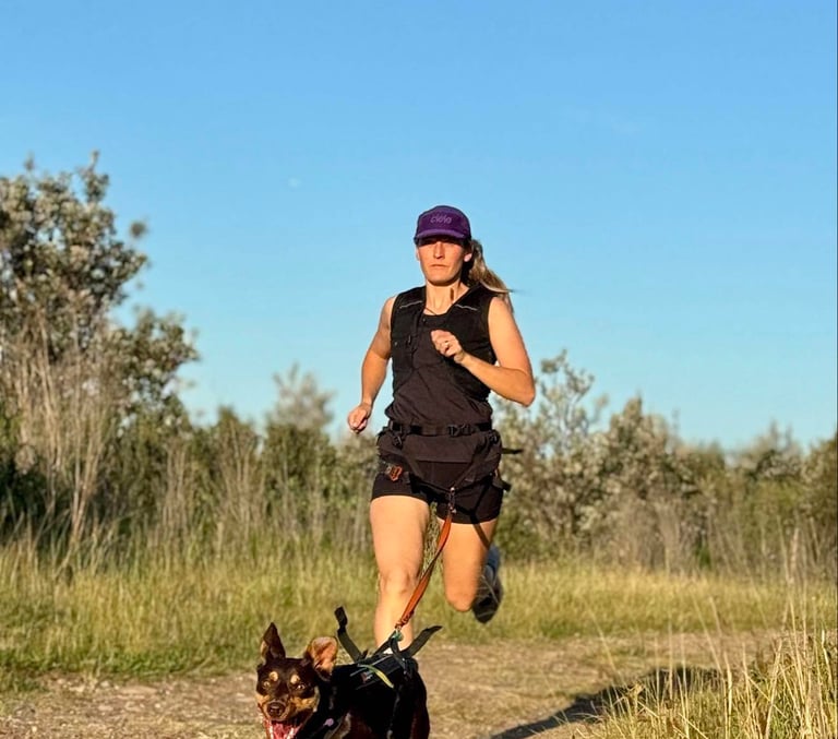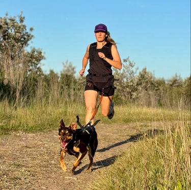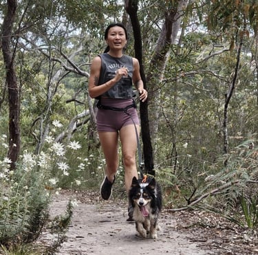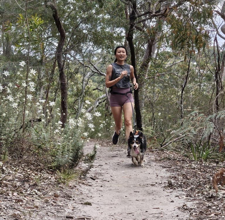 I'm Lucy, a Brit living in the Sutherland Shire. I've been passionate about running since I was at school and always dreamed of having a dog to run with. Now, I have Sid, my 18-month-old Kelpie, who loves joining me for parkrun and Canicross. She’s full of energy, loves playing fetch, and is always up for a cuddle when we’re not on the move.